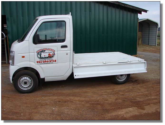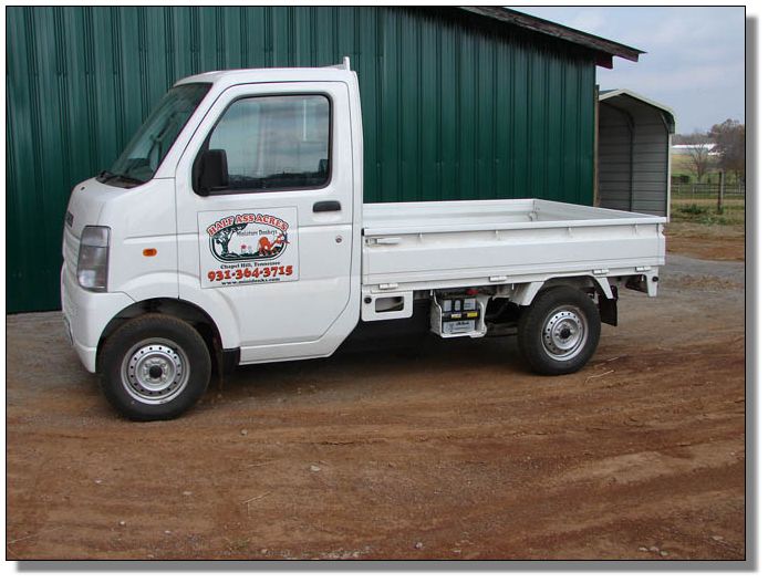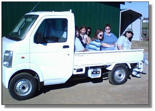 Japanese Suzuki Carry Barn Truck Our new 2007 Japanese Suzuki Carry Truck that we use for on our farm for feeding the donkeys grain and hay daily...rain or shine. We no longer leave unlimited hay rolls out for the donkeys. This truck was purchased in October 2007. We love it! We paid $10,700 no taxes and free delivery! Here is the website: www.usedminitrucks.com Click here to return to our farm improvements page. |