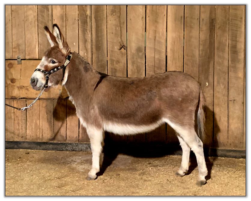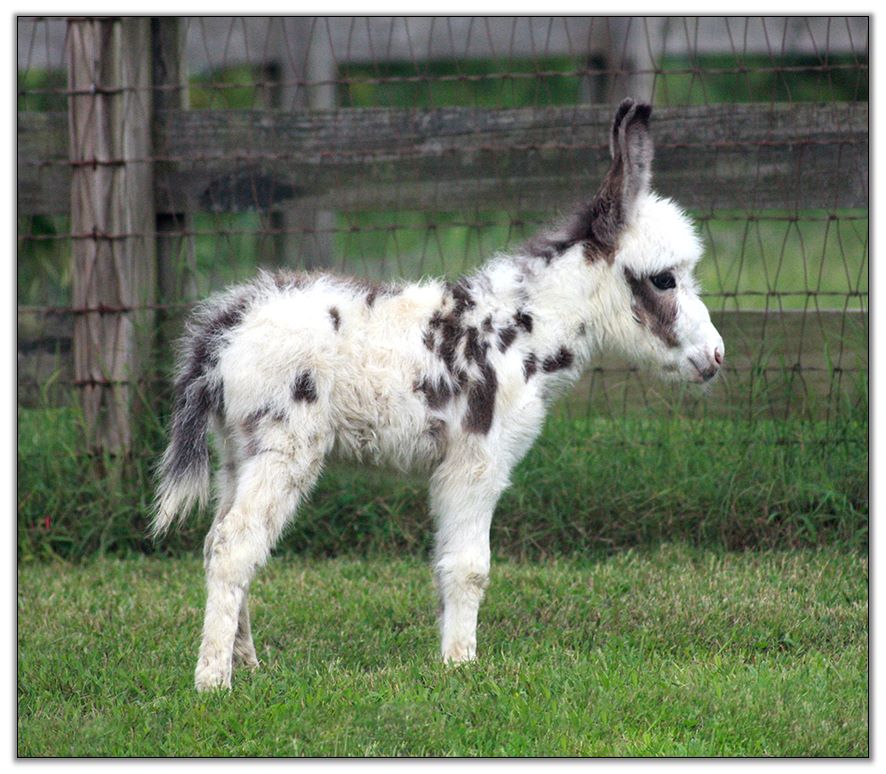 HHAA Excellente, dark spotted miniature donkey jack for sale at Half Ass Acres.