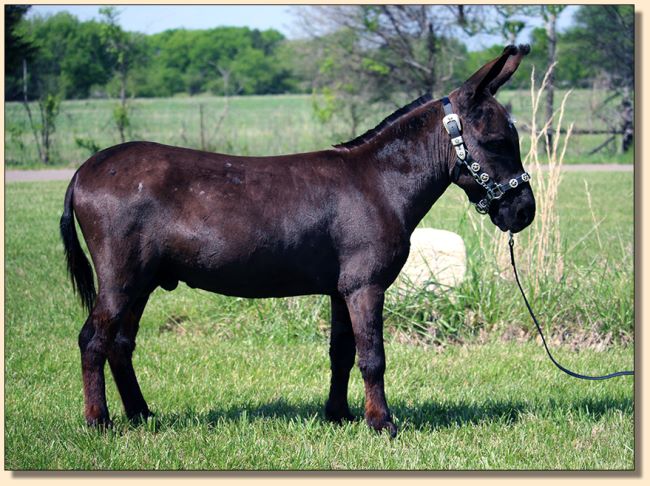 Mister Madison is as sweet as they come and we are pleased to offer him for sale. He has been shown in halter and he has been started in performance with in-hand events. He has a very calm easy going demeaner and it would not take a lot of training to make him a competitive show donkey in performance. He is very heavy boned and correct with 'buttons' on each fetlock that make him really stand out.