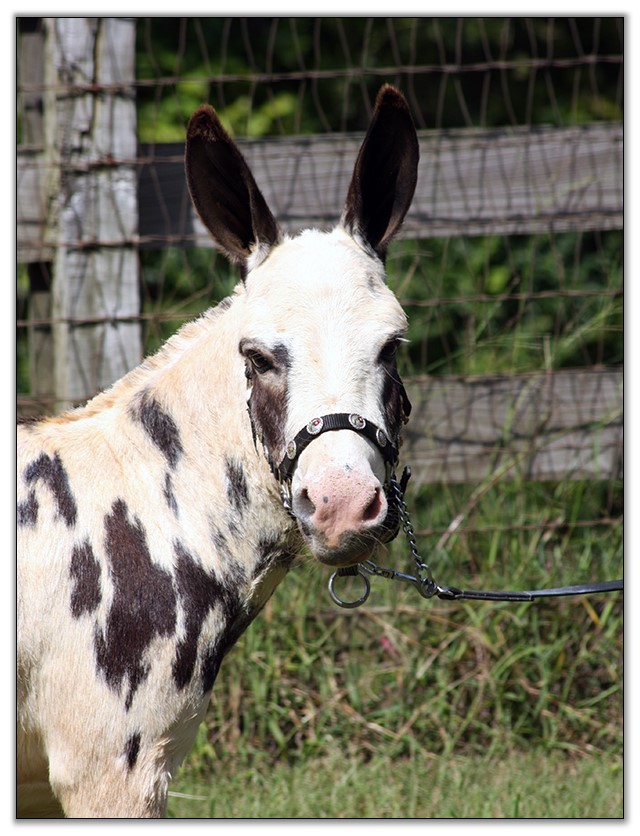 2015: Pow Wow has started his 2015 show season with a bang by winning second in a huge color class at The Great Celebration Mule & Donkey Show in July. Judge Abrams placed him first and Judge Cochran placed him 3rd. His stablemate Ch Chime and Katie Randall were first.