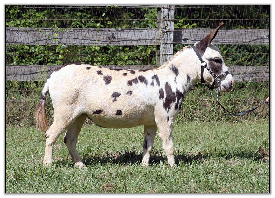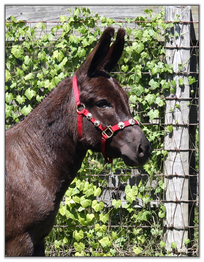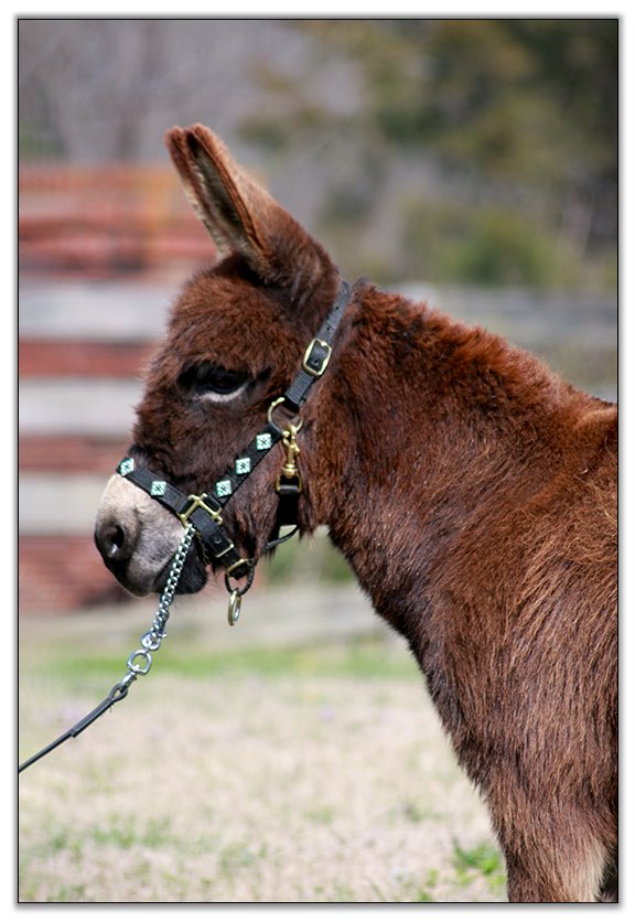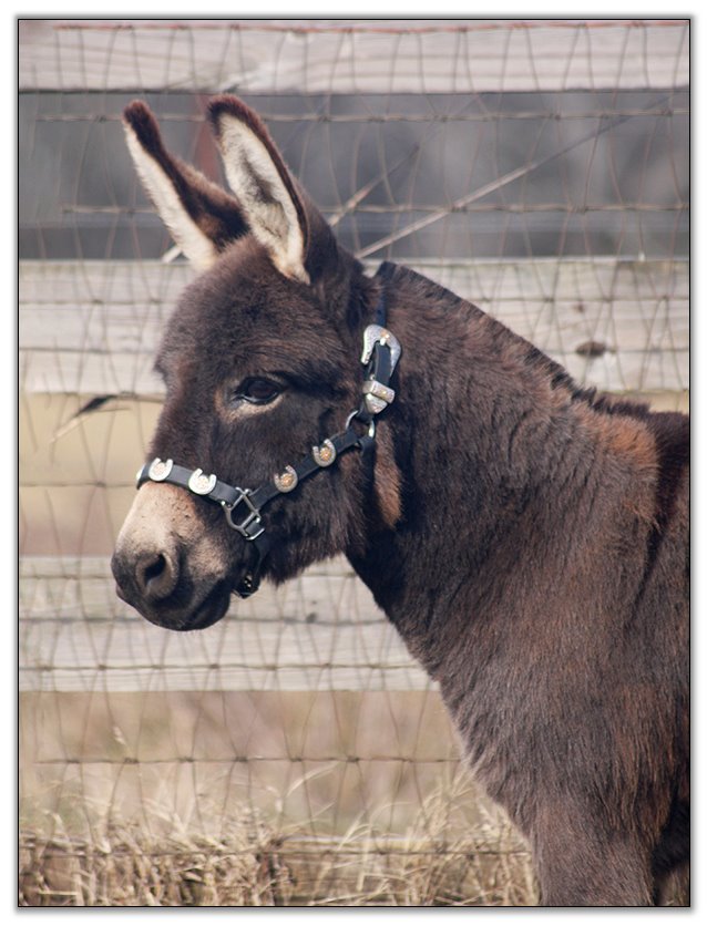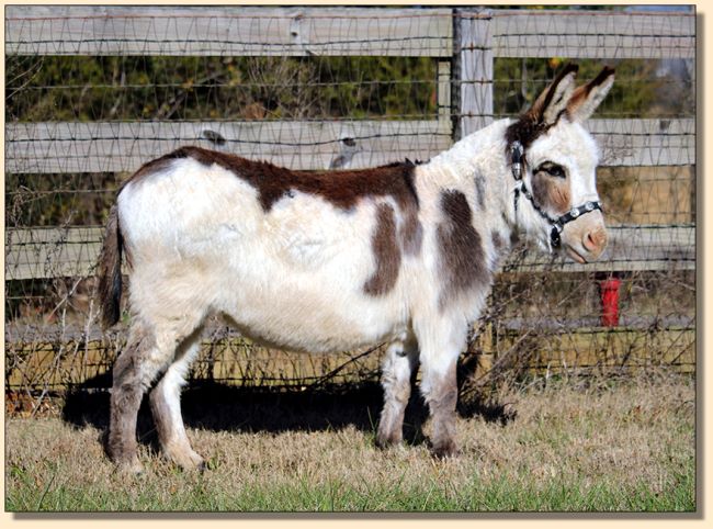 Baby is the result of Kathy Loudamy’s fine breeding program at K & K Ranch in Texas. She is no longer breeding donkeys and we could not believe how very fortunate we were to be able to obtain this jennet. Baby’s full sister is one of only two jennets that Kathy retained when she dispersed her herd.