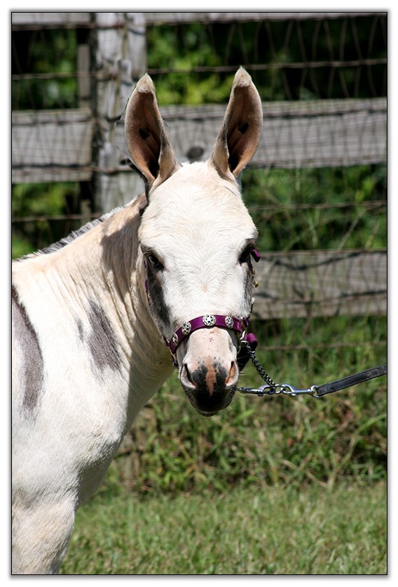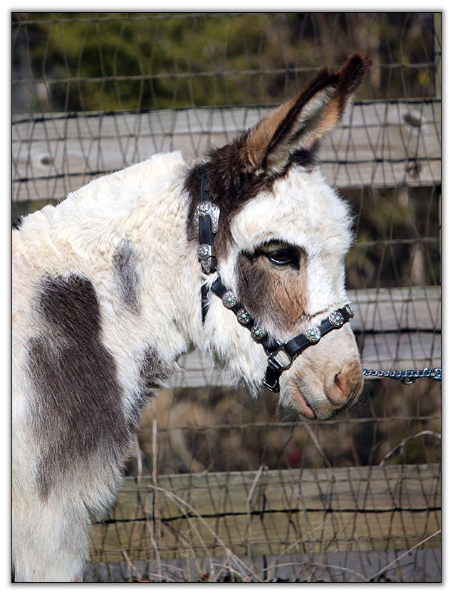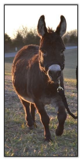 His new photos and videos above were taken on July 20th, 2015, with the expert handling of Katie Randall. Oh, how I love Pow Wow..what a sweet and agreeable donkey he is. He is one of a kind. You could not ask for a nicer attitude on a donkey. He just is no trouble at all. Don't I wish they all were like Pow Wow. Except for trimming his legs which he hates...but there is no perfect donkey!