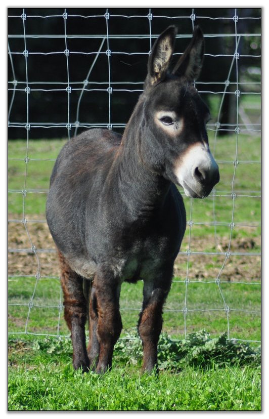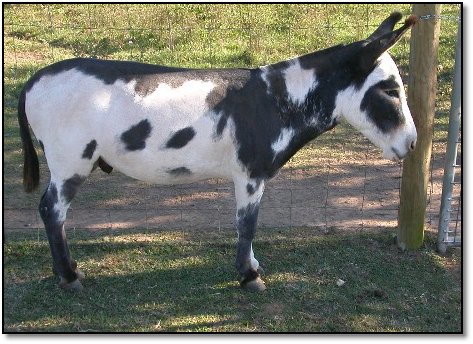 We have tried for almost three years to settle this jennet in foal but we have been unsuccessful. It is time for us to reduce our herd so we are giving up and offering her as a companion donkey. This is one gorgeous jennet with a super topline. Hopefully someone else will be able to settle her in foal. Blaze is shy with strangers and a very sensitive donkey.